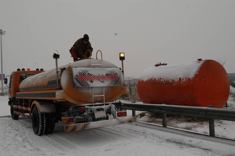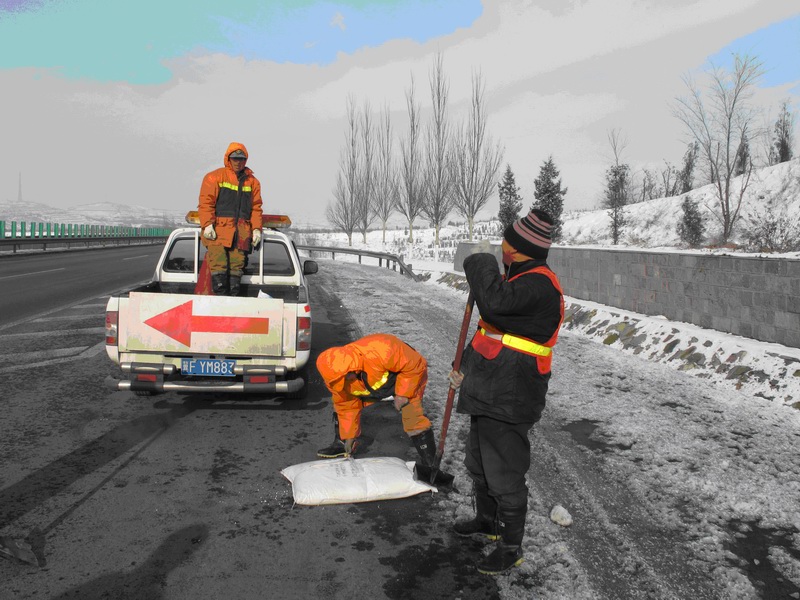 從11月10日早晨開(kāi)始,養(yǎng)護(hù)人員全部就位待命,各灑布車(chē)裝滿融雪劑,準(zhǔn)備隨時(shí)灑布。公司安排了兩輛巡查車(chē),分別向東西兩個(gè)方向開(kāi)始不間斷巡查,及時(shí)掌握最新雪情動(dòng)態(tài)。晚上,隨著大雪降臨,養(yǎng)護(hù)部門(mén)本著“先重點(diǎn)路段,后一般路段”的原則開(kāi)始在全線噴灑溶雪劑,以確保匝道、爬坡路段降雪及時(shí)融化,避免造成車(chē)輛“趴窩”,影響通行。到11日白天,又安排人員對(duì)重點(diǎn)路段進(jìn)行人工灑布,并派4臺(tái)除雪車(chē)上路推鏟積雪。12日,在降雪停止后,又安排200多人上路徹底清除路面積雪。由于除雪及時(shí),京張高速一直處于暢通狀態(tài),除由于進(jìn)京方向八達(dá)嶺高速積壓車(chē)輛造成車(chē)輛擁堵到京張路段,為保證安全,高速交警暫時(shí)封閉上口外,京張高速?zèng)]有因降雪而封閉,做到了省廳要求的24小時(shí)雙向四車(chē)道暢通,48小時(shí)路面無(wú)積雪。