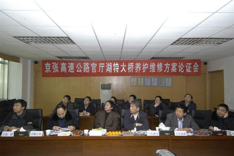 11月20日,公司組織召開京張高速公路官?gòu)d湖特大橋養(yǎng)護(hù)維修方案專家論證會(huì)。應(yīng)邀到會(huì)的專家有交通部科研單位和該特大橋原設(shè)計(jì)、監(jiān)理和施工單位的有關(guān)人員,省高管局養(yǎng)護(hù)管理部副主任唐蘭軍、橋梁管理科科長(zhǎng)郭永輝參加了會(huì)議。