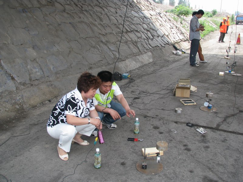 由于荷載試驗必須用標(biāo)準(zhǔn)重量的汽車進行加載才能測得詳細(xì)準(zhǔn)確的數(shù)據(jù),需在檢測期間斷交。為此公司與下花園交通局、交警隊聯(lián)系溝通,得到他們的大力配合,檢測時間安排在車流量較小的中午進行。