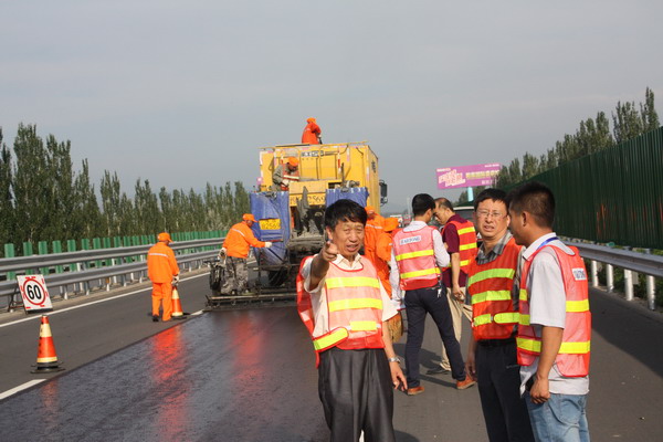 京張高速公路2015年路面微表處和標線補劃工程經(jīng)過充分的施工準備于8月6日正式開工。王啟成總工程師到施工現(xiàn)場檢查了施工情況,對工程的質量控制和安全保暢工作表示滿意。本工程是今年迎國檢的重點施工項目之一,總投資249.94萬元,預計8月30日前全部完工。(王喜會)。