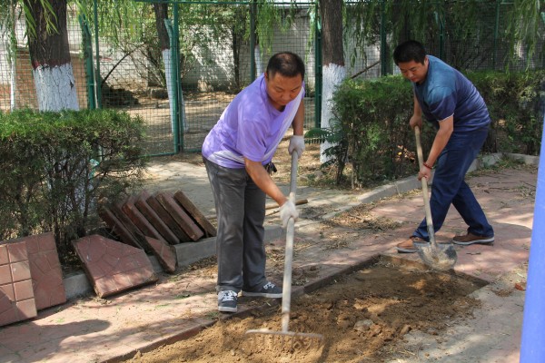 6月15日,郭強、段建平等幾名老同志主動到職工菜地勞動,為菜地除草、澆水。當發(fā)現(xiàn)菜地一角堆積了一些廢舊磚塊時,幾名老大哥一商量,干脆廢物利用,用這些磚塊為職工鋪一條采摘小路,大家紛紛表示贊同并積極加入勞動隊伍。小路修好后,干勁高漲的人們又一鼓作氣對“鼓包”的方磚路面進行了修整。
