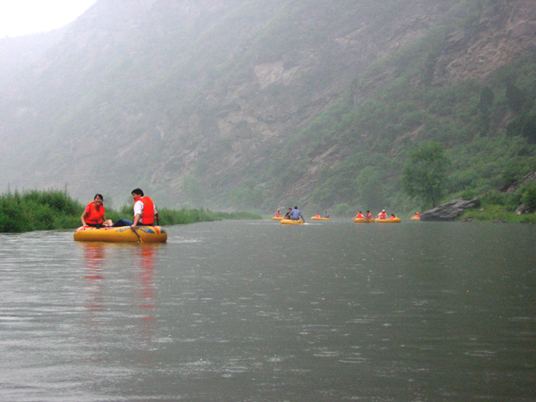 永定河峽谷從官廳水庫攔河大壩順流而下,山高谷深,峰巒疊嶂,俗稱小三峽。有宋代楊家將七郎八虎戰(zhàn)幽州的古戰(zhàn)場,有舊莊窩林區(qū)的奇山異石,有一線天、石橋、木橋、吊索橋,有亞洲第一樓等景觀。豐沙鐵路、官沿公路在永定河峽谷穿山跨河,隧道有100多座,橋梁有40多座。永定河峽谷漂流,號稱萬米漂流。全程約10公里,時速10—15公里,落差約300。峽谷漂流,別開生面,有驚無險,深受廣大游客歡迎